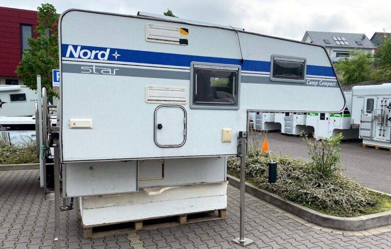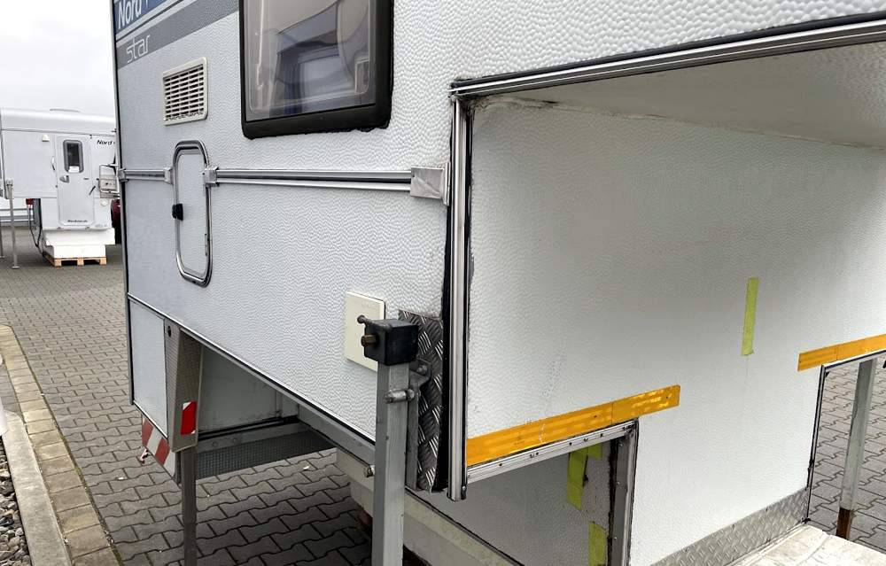 Schau dir die Nordstar Wohnkabine im Inserat genau an. Gibt es irgendwelche ungewöhnlichen Merkmale an der Außenhaut dieses Modells? Siehst du farblich anders aussehende Bereiche an der Außenhaut? Sind unter den Stützenaufnahmen vorne (Camp) oder vorne und hinten (Eco) ungewöhnliche Aluplatten angebracht? Letztere könnten auf Feuchtigkeit an den Aufnahmen hinweisen, stellen jedoch oft nur einen unzureichenden Reparaturversuch dar. Es ist auch sinnvoll, die Wohnkabinen-Kaufberatung noch einmal zu Rate zu ziehen, um sicherzugehen, dass du nichts übersehen hast.