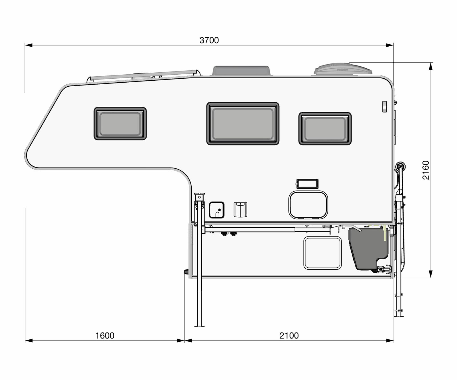 Auf vielfachen Wunsch haben wir die Gasheizung durch eine Dieselheizung ersetzt. Diesel ist ein noch leichter verfügbarer Brennstoff, den Ihr wahrscheinlich sowieso für Euren Pickup benötigt. Somit seit Ihr zukünftig noch autarker unterwegs. Der Dieseltank ist leicht zugänglich an der Außenseite der Kabine hinten am Sockelbereich montiert. Das passt sowohl für Fahrzeuge mit Links- als auch mit Rechtsbetankung.