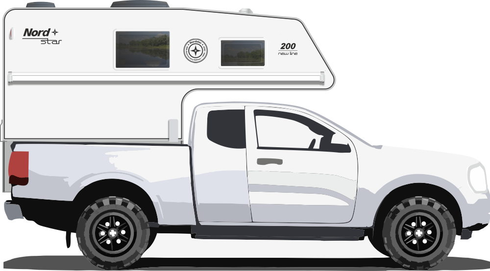Auf einem 1,5 Kabiner Pickup schließt die Nordstar 200 NLC® fast bündig ab und ist deshalb bestens für den Anhängerbetrieb geeignet. Durch den minimalen Überhang bleibt die Bodenfreiheit bei steilen Passagen im Gelände erhalten. Die Nordstar 200 NLC® Absetzkabine ist sowohl für Eineinhalb- & Doppelkabiner Pick-ups geeignet.